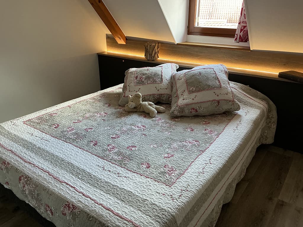 Nos 3 chambres vous permettrons de vous reposer agréablement après vos escapades, avec, pour l’une d’elles, une vue sur les toits de Ribeauvillé et sur notre propre nid de cigognes.